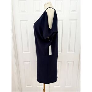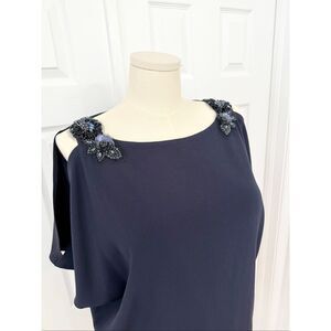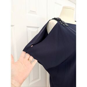 Rickie Freeman Teri Jon Navy Blue Floral Sequin Beaded Sheath Cape Dress 10 NWT