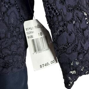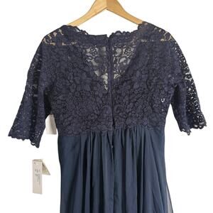 Rickie Freeman Teri Jon Navy Lace Empire Waist Elbow Sleeve Chiffon Gown 10