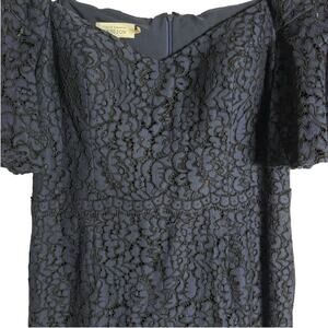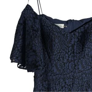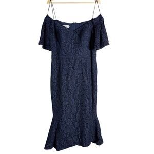 Rickie Freeman Teri Jon Navy Blue Off Shoulder Short Sleeve Midi Dress 14