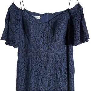 Rickie Freeman Teri Jon Navy Blue Off Shoulder Short Sleeve Flounce Dress 14