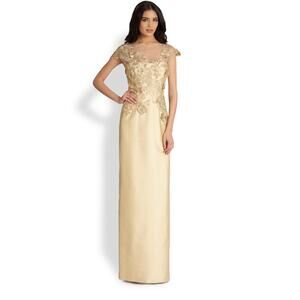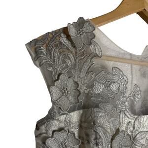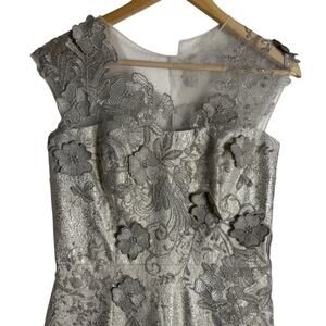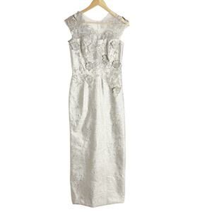 Rickie Freeman Teri Jon Silver Gray Floral Jacquard Applique Evening Gown Size 4
