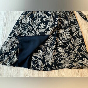 EUC Vintage Rickie Freeman Teri Jon Navy / White Silk Chiffon Long Floral V Neck Wrap Dress 6