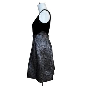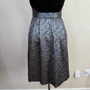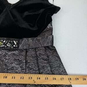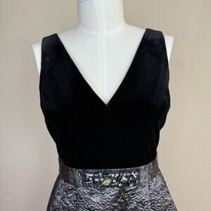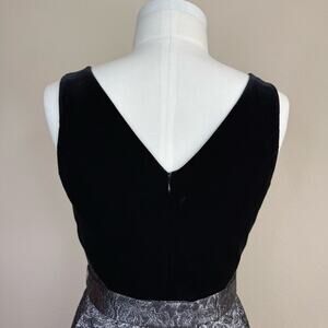 Rickie Freeman for TERI JON Velvet Black and Silver Midi Dress Women's Sz 8