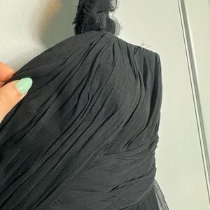 Rickie Freeman for Teri Jon Black 100% Silk 90s Y2K Rosette Strap Mini Dress