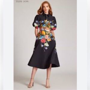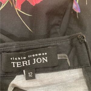 Rickie Freeman for Teri Jon Black Floral Midi Dress Size 12