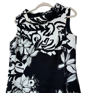 Rickie Freeman for Teri Jon Black White Cowl Neck Floral Above the Knee Dress 12