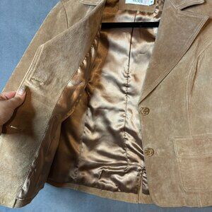 Ricki's Women's Suede Genuine Leather Lined Jacket Tan Buttons Pockets Sz M