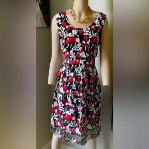 Ricki’s dress black and red size 8 sheer at the bottom floral pattern zipper back !!