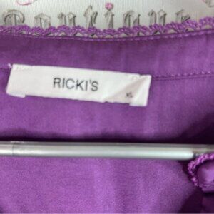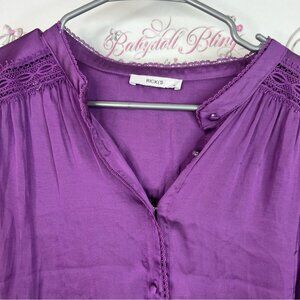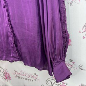 Ricki's long sleeve button up shiny Rich Purple Blouse with Lace Accents