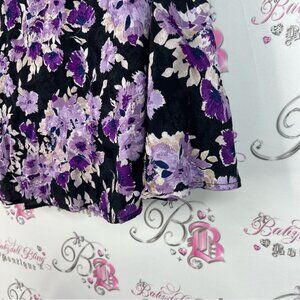 Ricki's top shirt ruffle sleeves flowers flowy Black and Purple Floral Blouse