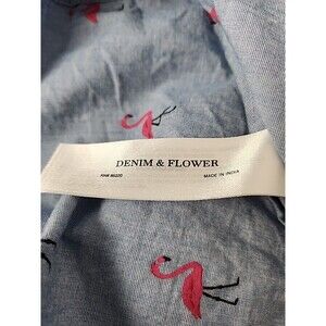 Ricky Singh Denim & Flower Mens Cotton Button Down Flamingo Shirt Medium