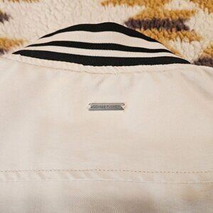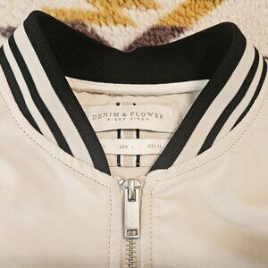 Ricky Singh Men's Denim Flower Bomber Oxford Jacket Lightweight White Size L