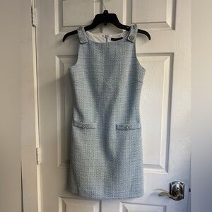 This elegant sleeveless dress in a soft blue hue is perfect for any occasion. Its classic design offers a timeless look.