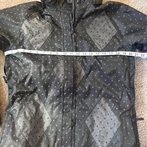 Used 1 season only 3 times (Like new!) Med weight Ski/Snowboard Jacket. removable hood, Zipper pockets, zipper arm pocket, velcro to secure arms, thumb hole in sleeves and 2 side vent pockets.