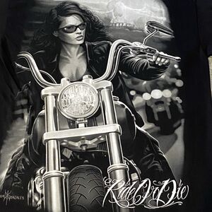 Ride or Die Mens Graphic T-Shirt XL Sick Motorcycle And Woman On Bike Design