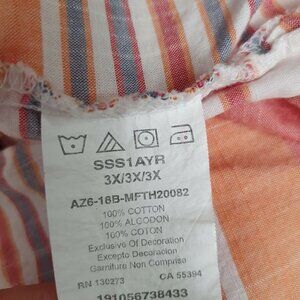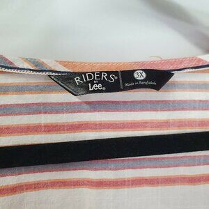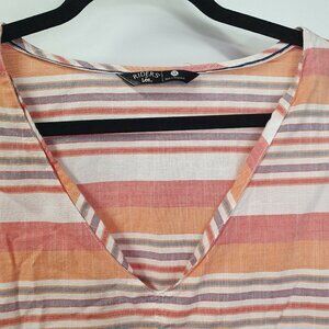 Riders By Lee Striped V-neck 3/4 Tie Sleeve Loose Fit Blouse Plus Size 3X