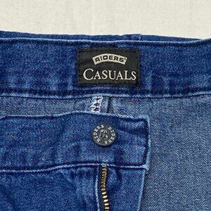Vintage High Rise A Line Denim Jean Skirt from Riders Casuals by Lee. Lovingly worn, not torn or stained - looks in excellent used condition. High-rise, slim silhouette in medium wash denim. Belt-loop waistband with button and zip fastening. Jeans style slant pockets on front. Darts at back waist. Seam down center back with kick pleat. Classic double stitched seams. Hits right above ankles. Durable, versatile and comfortable — this skirt never goes out of style.