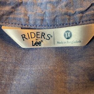 Riders by LEE Blue Women's V-neck with 3 buttons Top size 1X 100% cotton