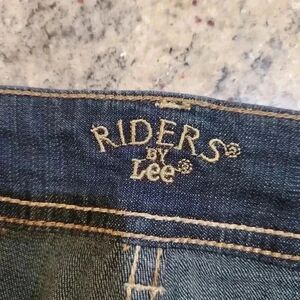 Riders by Lee Women's Blue Dark Wash Cotton/Spandex Denim Jeans EUC sz 12 Waist 34 Rise 10 Inseam 28
