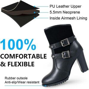 【Chic Look】: Unique buckle strap high heel and black appearance make the ankle boots combine cool look with sexy style. Gorgeous design with YKK zipper details adds the chic and elegant taste which catch eyes from the crowd.