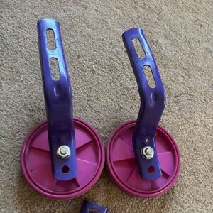 Riderz Training Wheel Set. Panels are faded, but wheels still have good tread. No hardware included other than what is pictured.