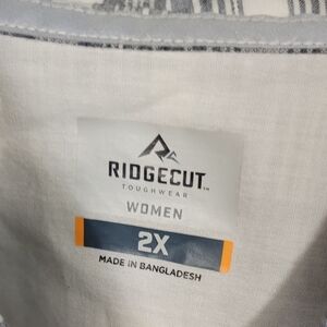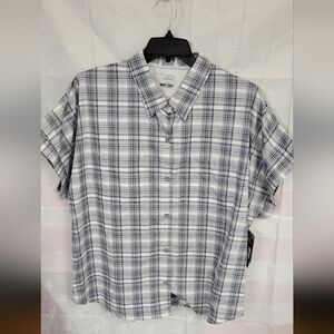 Ridgecrest Toughwear Short Sleeve 2 Pocket Cream Blue Plaid Button Up 2X