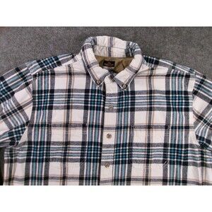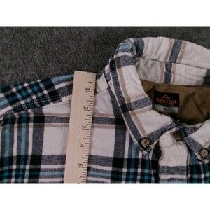 Pre-owned Ridgecut flannel shirt in XL with light overall wear and minor fraying at the bottom hem; no major stains, holes, or tears visible. See photos for close-up views of the fabric, label, and condition.- Fast Shipping Guaranteed, Same or Next Day Handling Time!