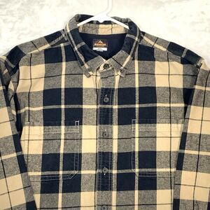 Ridgecut Toughwear Flannel Shirt Button up Mens 2XL Blue Tan Plaid Heavy Cotton