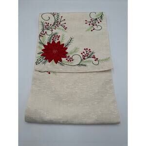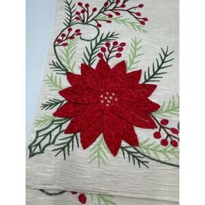 Ridgefield Home Embroidered Festive Table Runner With Poinsettia Design 14"X72"