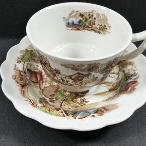 Ridgway Potteries Catching Mail Tea Cup & Saucer set Staffordshire England