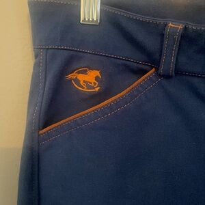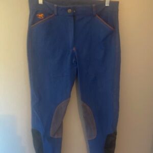 English riding breeches Smartpak brand. Blue with orange piping and in excellent condition.