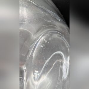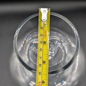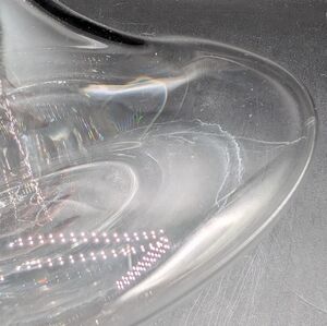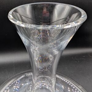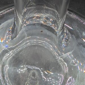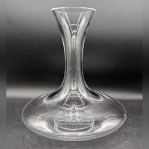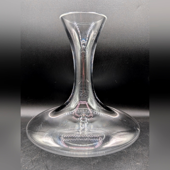 This product is handmade and individually crafted, so every piece has a unique character. Due to the nature of crafting, small tolerances in the size and weight of each product, tiny bubbles, imperfections, or slight surface variations are an acceptable part of the process. This decanter has a small black inclusion on the inside of the neck as shown