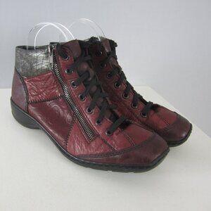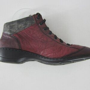 Rieker Antistress Ankle Boot Women 8 Dark Platinum Black Embossed Leather EU 39 Lace Zipper Shoes Bootie