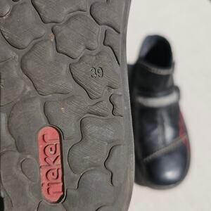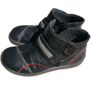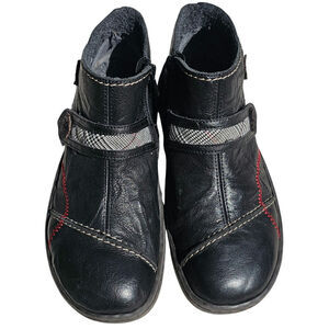 Rieker Black, Red Contrast Trim, Casual Ankle Boot Button Detail Zipper Size 39