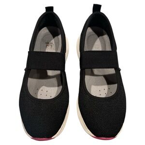 Stylish Rieker flats. Black mesh upper. White sole. Comfortable and versatile. “Gently used once, like new condition.”