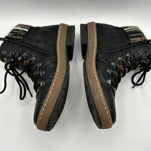 Rieker Boots 38 US 7 Black Leather Quilted Ankle Booties Sherpa Lace Up