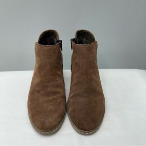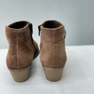 Rieker Brown Suede Slip-On Ankle Booties Rieker women's 39 which is similar to a women’s 8 according to their size chart. They have a fuzzy lined interior.