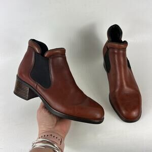 Rieker Chelsea Ankle Boots Women's 6 Brown Leather Comfort Slip On Block Heel