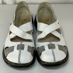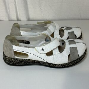Rieker Comfort Closed Toe Flats Sandals Leather White Gray Size 40 EU 9.5 US