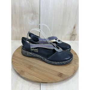 Rieker Daisy Black Leather Closed Toe Sandal Shoes Womens Size 38 US 7
