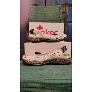 Rieker Daisy Women's Size 8.5 White and Black Leather Mary Jane Floral Sandal