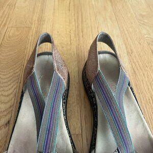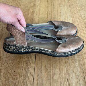 Rieker Dasiy Antistress Closed Toe Leather Flats- Women's EU Size 42. Antique Brown leather uppers, elastic bands, medallion detail. In good condition.