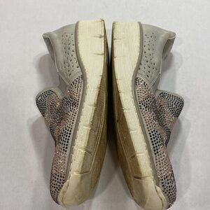 These Rieker 537T1 slip on are a fantastic summer casual shoe that provides a bit of height with the small wedge heel. They also offer a bit of glamour with the small studs at the front of the shoe. Two elasticated side panels and the cushioned Rieker Anti-Stress sole increase comfort.