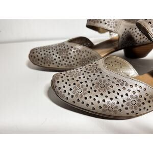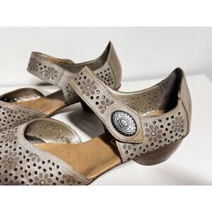 Rieker EUC Taupe Leather Mirjam 1.75" Heel Cutout Adjustable Strap Shoe 37 6.5
