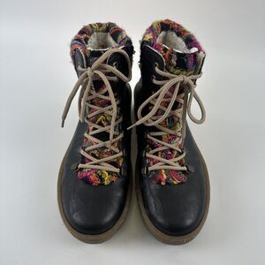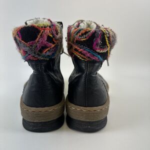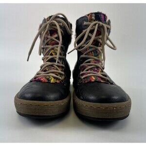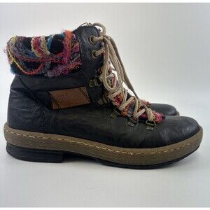 Rieker Felicitas Bootie Ankle Boot Black Faux Leather Multi Knit Lace Up Zip 39 US 8.