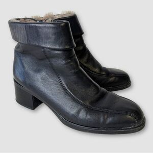 Rieker Greta Black Fleece Lined Leather Block Heeled Ankle Boots Size 42 SHOES 047