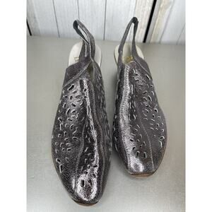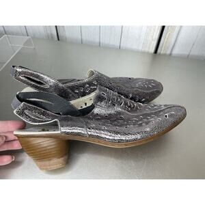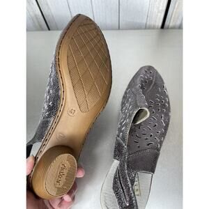 Rieker Leather Sandaly Comfort Heels Metallic Silver Size EU 41 US 10