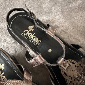 Rieker Metallic Leather Adjustable Buckle Wedge Sandals Shoes Women's 38 US 7