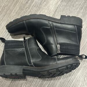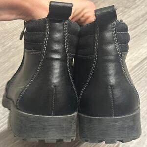 Rieker Ron Ankle Boot Black Leather Side Zip Comfort Lug Sole Warm Lining Wide 9