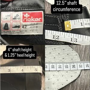 Features: soft leather upper with contrast stitching; dual side zippers for easy on/off; padded ankle panel for comfort; warm insulated lining; removable cushioned insole; durable lug sole for traction; flexible construction and roomy fit for all-day wear; Rieker Antistress comfort technology